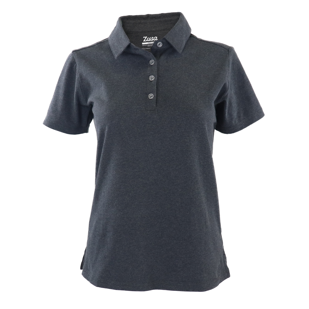 The sustainable Zusa Black Heather Women's Peachy Polo is here to be your new favorite, everyday corporate polo! From the office to your weekend plans, the custom Peachy Polo will have you doing it all while staying comfortable and looking sharp. The Egyptian cotton is made with a brushed finish making this logo-branded sustainable polo the softest you'll ever own! Our favorite part? This custom polo shirt for women combines the comfort you need with the sustainability the Earth needs. Win-win!