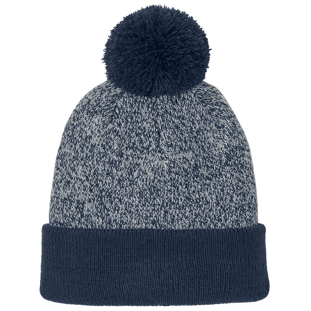 Sport-Tek True Navy/Silver Halftime Heather Pom Beanie