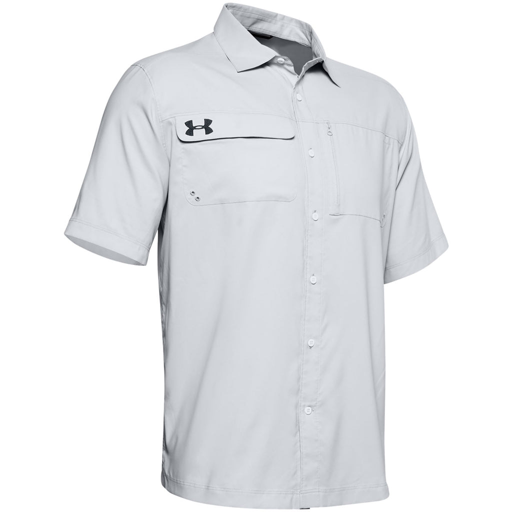 Enjoy a professional, yet athletic look with a custom embroidered Under Armour Men's Halo Grey Motivate Button Up. The gorgeous polyester rich, elastane blend is professional enough for corporate apparel, but comfortable enough to serve as team athletic wear if needed. The smooth woven fabric has built-in stretch for mobility which makes these great for employees to wear as uniforms with a company logo stitched on. With a UPF of 30, stain-resistant material, anti-odor technology and moisture wicking properties, this custom Under Armour button-up will stand up to the toughest jobs possible. Choose the loose fitting Motivate button up for your upgraded casual wear needs.Highlights