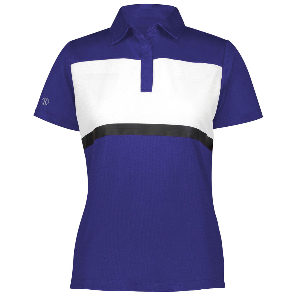 Holloway Women's Purple/White Prism Bold Polo with embroidery is a great look as part of uniforms or employee apparel with your company logo. The lightweight polyester wicking honeycomb knit provides a feminine fit with UPF 50+ for added protection. The accents at the chest helps this polo stand out in a crowd and get you noticed. Try out a custom logo to add this polo to your logoed apparel options and watch as they become a popular sales item. The feminine fit with self-fabric collar, three-button placket, and set-in sleeves is a great addition to every wardrobe. Place an order today.Corresponding Men's Style:Holloway Men's Purple/White Prism Bold Polo