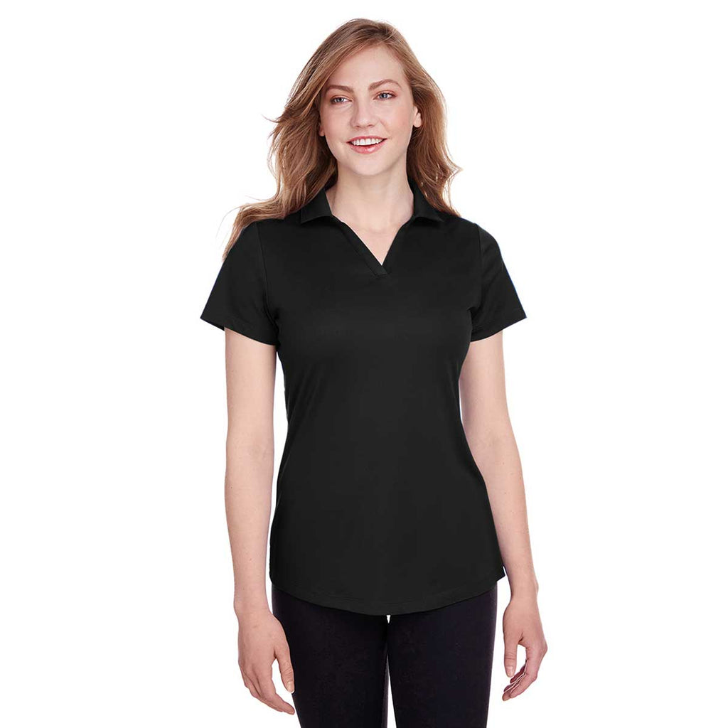 Hit the driving range in a custom Puma Golf Women's Black Icon Golf Polo in your choice of color and size options. Made of 100% polyester, this polo is equipped with moisture wicking capabilities and 4 way stretch fabric to allow you to move freely whether spending a long day at work or with the family. Add a company logo to use these as company uniforms or a team name to support team events in the warmer months. The short sleeve golf polo offers a v-neck for added comfort and a feminine fit so you can remain fashionable.