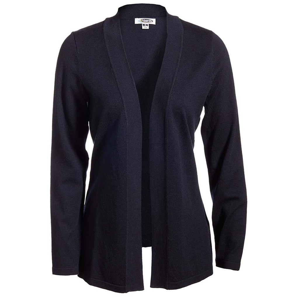 Bring back a custom classic with the Edwards Women's Navy Open Cardigan available in multiple colors. Made of a blend of cotton, acrylic, and nylon with full fashioned sleeves, these cardigans offer a longer length and flattering silhouette that will be a big hit with a corporate embroidery in your choice of design. Use these as part of hospitality apparel or even corporate uniforms to create a classic, yet unique look for your company. Perfect for the office, the weekend, or a big event, these are easily used as an outer layer to add to any outfit.Highlights