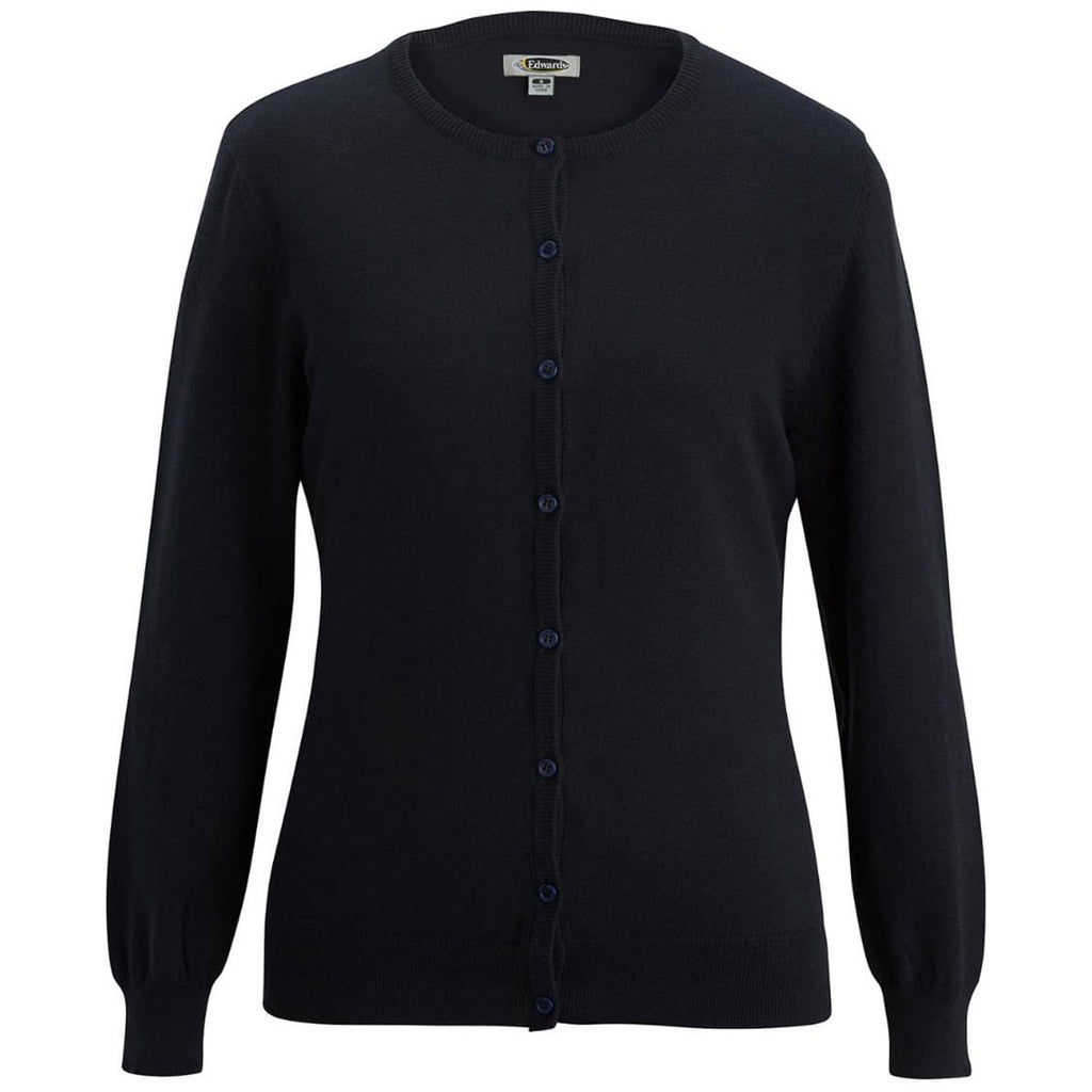Improve your wardrobe with a custom Edwards Women's Navy Twinset Cotton Cardigan & Shell. This simple twinset is a perfectly paired short-sleeve shell and classic cardigan with dyed to match buttons. Add a company logo to use as corporate apparel or part of an employee uniform or something custom to build your own logoed apparel collection. The traditionally fitting, jewel neck cardigan with rib-knit collar, cuff, and hem is conservative without being unfashionable. The lightweight cotton blend is soft and smooth for all day comfort. Easily transition from the office to dinner out with the family or wear on your day-to-day errands.Highlights