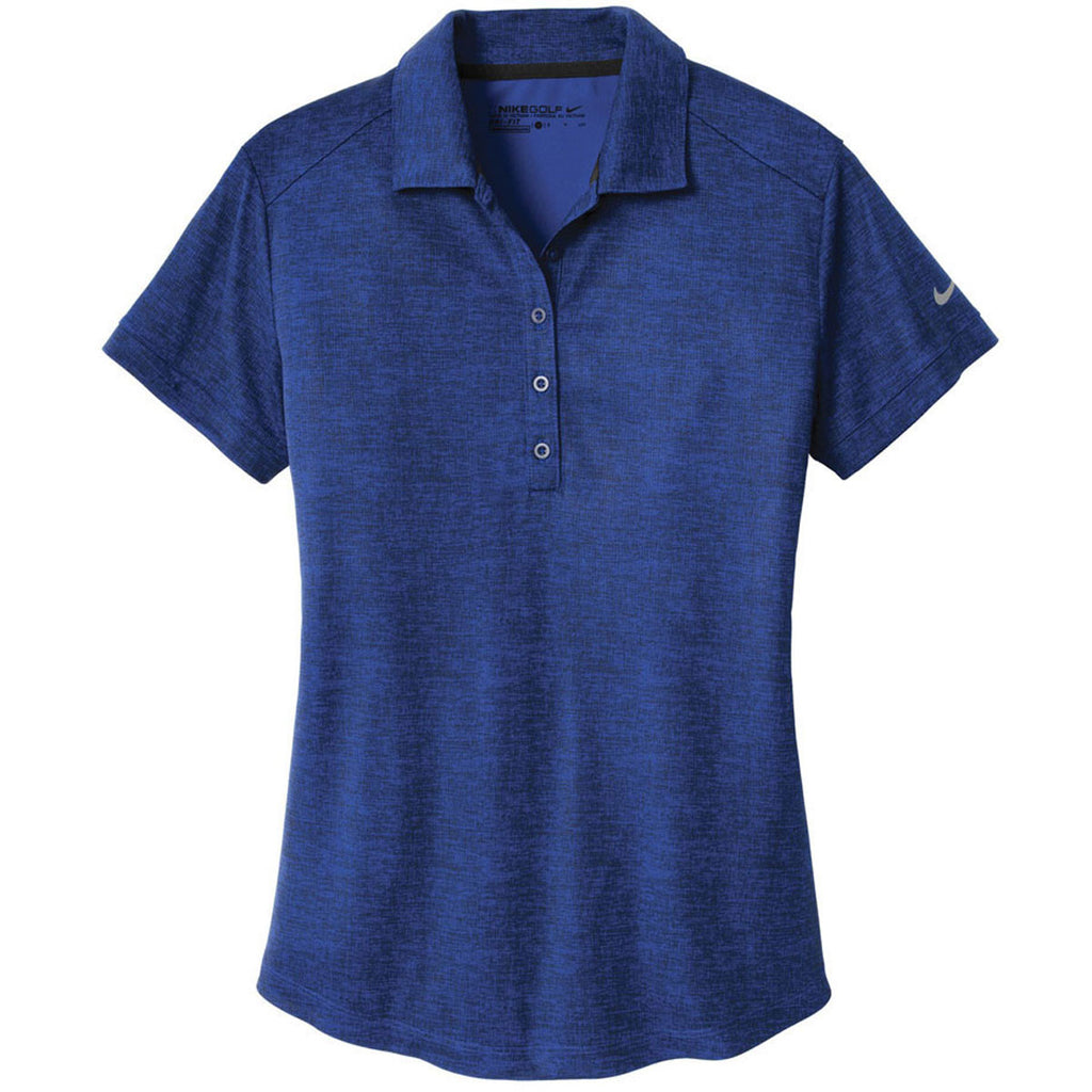 Your company logo deserves the absolute best when it comes to co-branded clothing for women. Enter Nike, the world's premier brand in athletic apparel and sportswear. These personalized Nike Women's Old Royal/Marine Dri-FIT Crosshatch Polo are worthy of the iconic Nike swoosh logo and are worthy of your custom embroidered corporate logo too. These women's golf polo shirts are made from Nike's high-tech Dri FIT performance fabric that's designed to be breathable and moisture-wicking, so you stay cool and dry on the course or in the office.