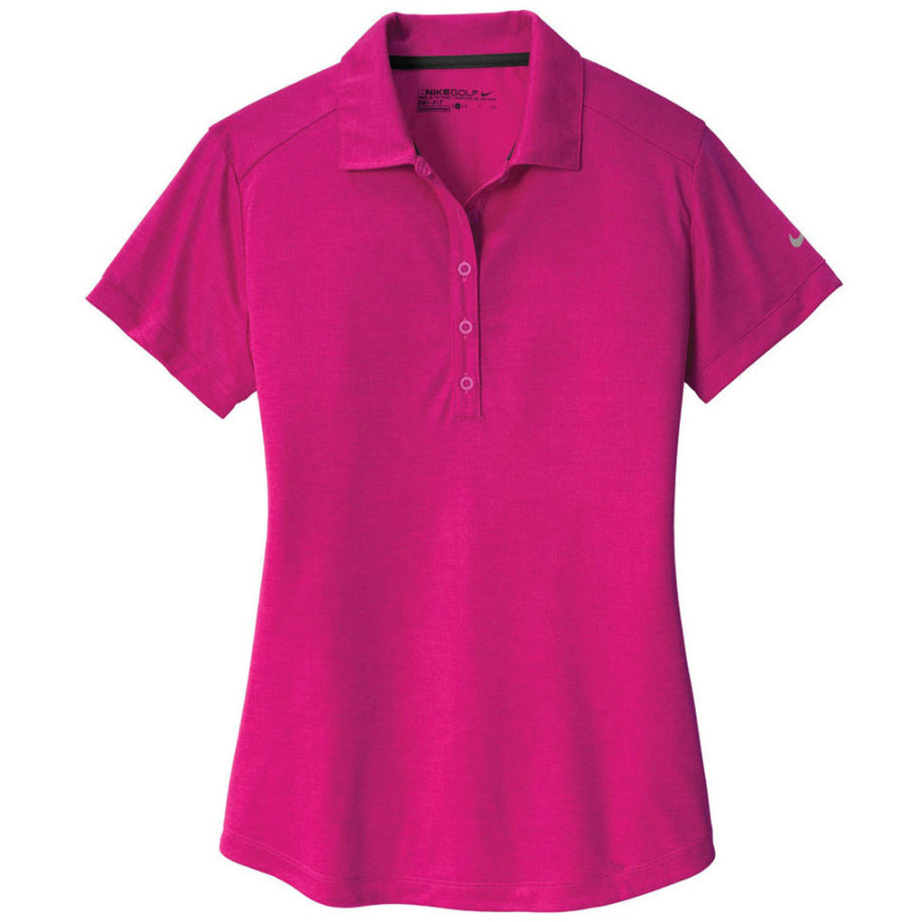Your company logo deserves the absolute best when it comes to co-branded clothing for women. Enter Nike, the world's premier brand in athletic apparel and sportswear. These personalized Nike Women's Fireberry/ Sport Fuchsia Dri-FIT Crosshatch Polo are worthy of the iconic Nike swoosh logo and are worthy of your custom embroidered corporate logo too. These women's golf polo shirts are made from Nike's high-tech Dri FIT performance fabric that's designed to be breathable and moisture-wicking, so you stay cool and dry on the course or in the office.