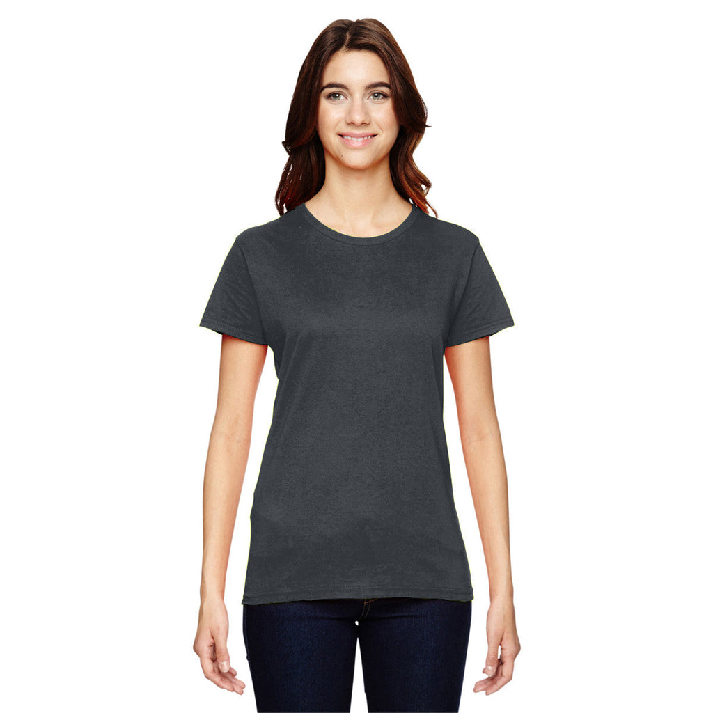 During a workout or extended time outdoors working on a home improvement project, you never want to wear a t-shirt that holds you back. The Gildan Women's Heather Dark Grey Lightweight T-Shirt weighs only 4.5 ounces to keep you energized throughout your grueling activities. One-hundred percent preshrunk ring spun cotton softly caresses the skin. Attach a custom logo and watch recognition of your company increase everywhere you go.Highlights