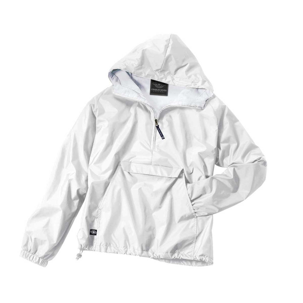 There are pullovers that pretend to be classic pullovers, and then there are true classic pullovers. This Charles River Unisex Adult White Classic Solid Pullover belongs in the latter category. Featuring wind and water resistance thanks to River Tec nylon with lining of cotton flannel, you'll have no trouble remaining hard to the outside elements while staying cozy and warm on the inside. And since you can pack this piece into its own pouch when traveling, you don't even have to wear it out to have that weather protection at a moment's notice. Add some customization with Merchology and turn this pullover into a quality corporate gift.Highlights