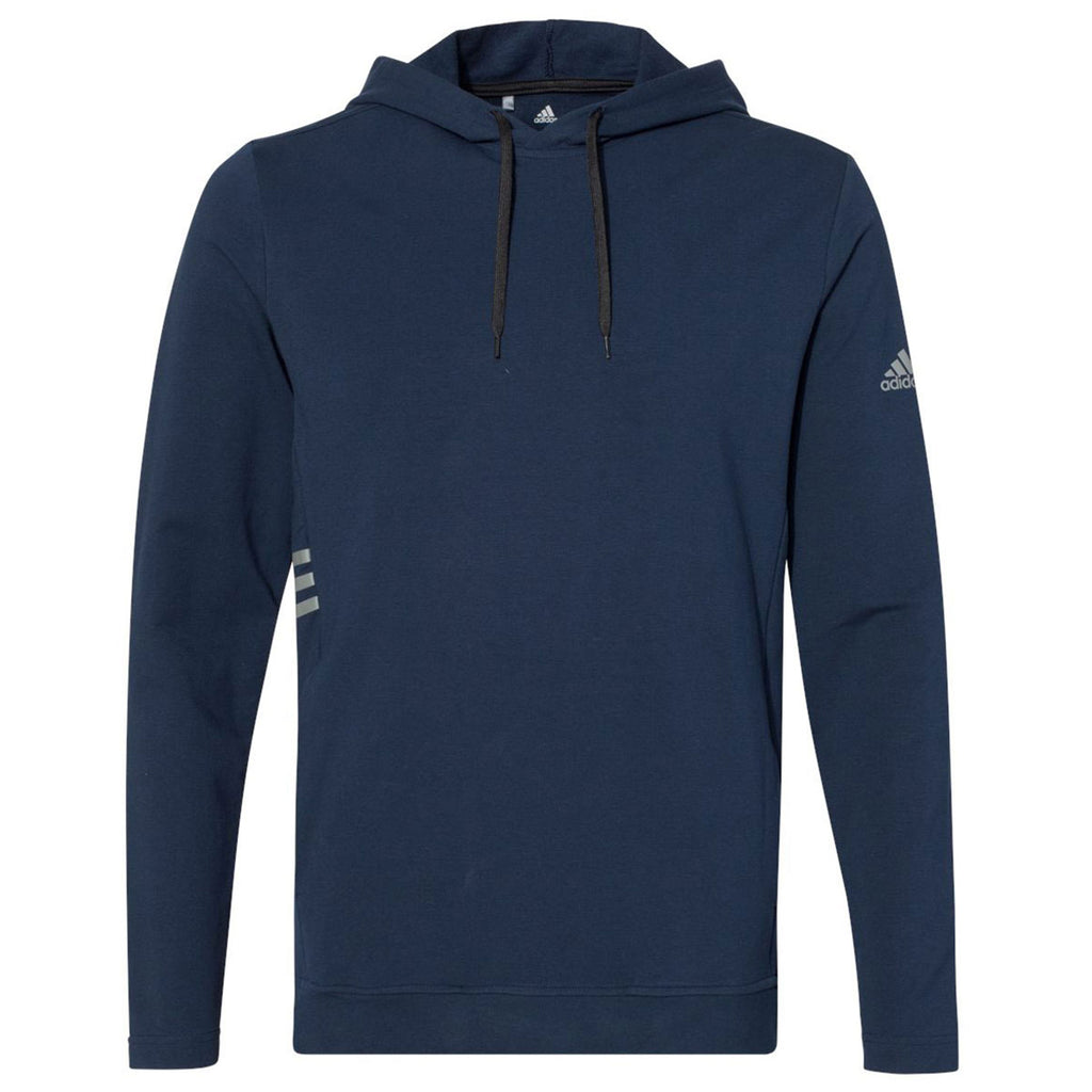 Add a screen print to the Adidas Men's Collegiate Navy Lightweight Hooded Sweatshirt to make a statement whether working out or heading out to enjoy the day. The perfect option as athleisure apparel for those that enjoy a morning run or hitting the machines at the gym, this cotton, elastane French terry blend is lightweight and comfortable. Contrast striping on the right body adds a bit of flair to this two front pocket sweatshirt that makes a wonderful employee gift or just an addition to a personal wardrobe. Add a custom logo to use as employee apparel or create team gear that will be treasured.