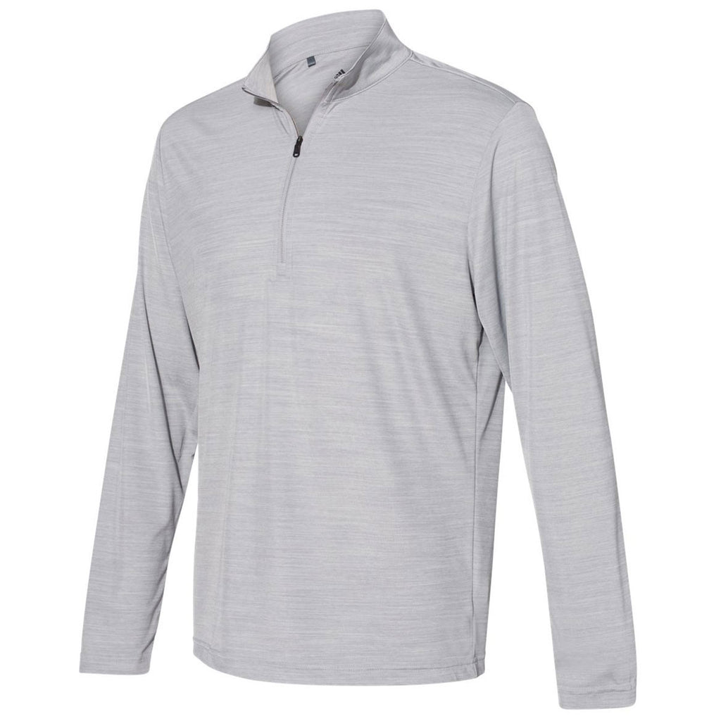 Create a unique custom look with the Adidas Men's Mid Grey Melange Lightweight Quarter Zip. This sleek lightweight quarter zip is made of 100% recycled polyester interlock knit for an easy to wear design that will be a big hit. Whether adding a custom logo and using as part of athleisure apparel for a team event or a company embroidery to use as an employee gift, this pullover is a must have. The moisture wicking material with a UPF 50+ rating is perfect for enjoying the outdoors while hiking, biking, or hanging out with friends.