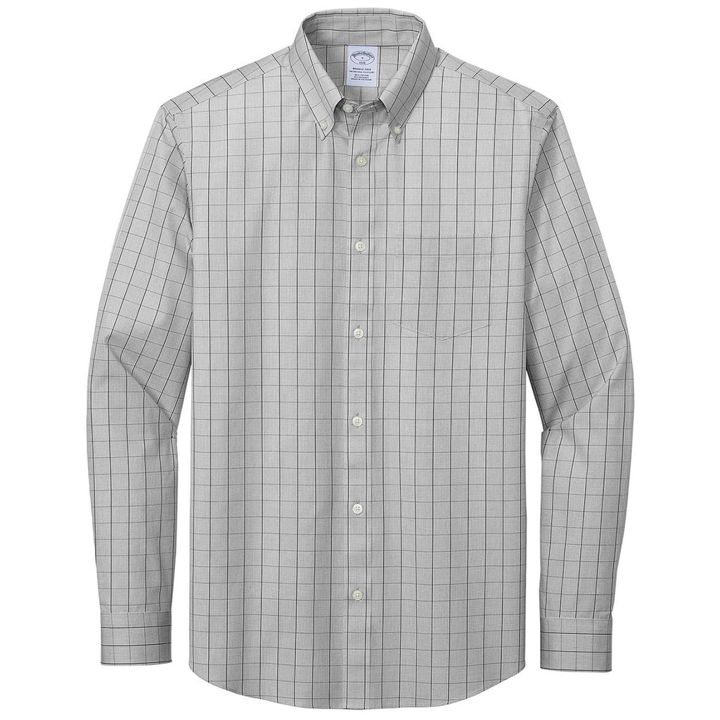 Brooks Brothers Men's Shadow Grey Wrinkle Free Stretch Patterned Shirt