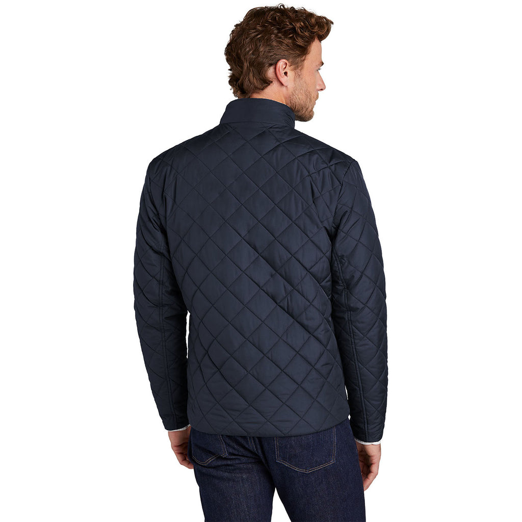 Brooks Brothers Men's Night Navy Quilted Jacket with custom embroidery is a high-end look for an affordable price. The gorgeous jacket is great for chilly autumn weather with a polyester shell and lining with a rib knit collar and faux leather label patch. Add a company logo to the design to use as outerwear for employees or to give as gifts for a special occasion. Place an order today.