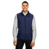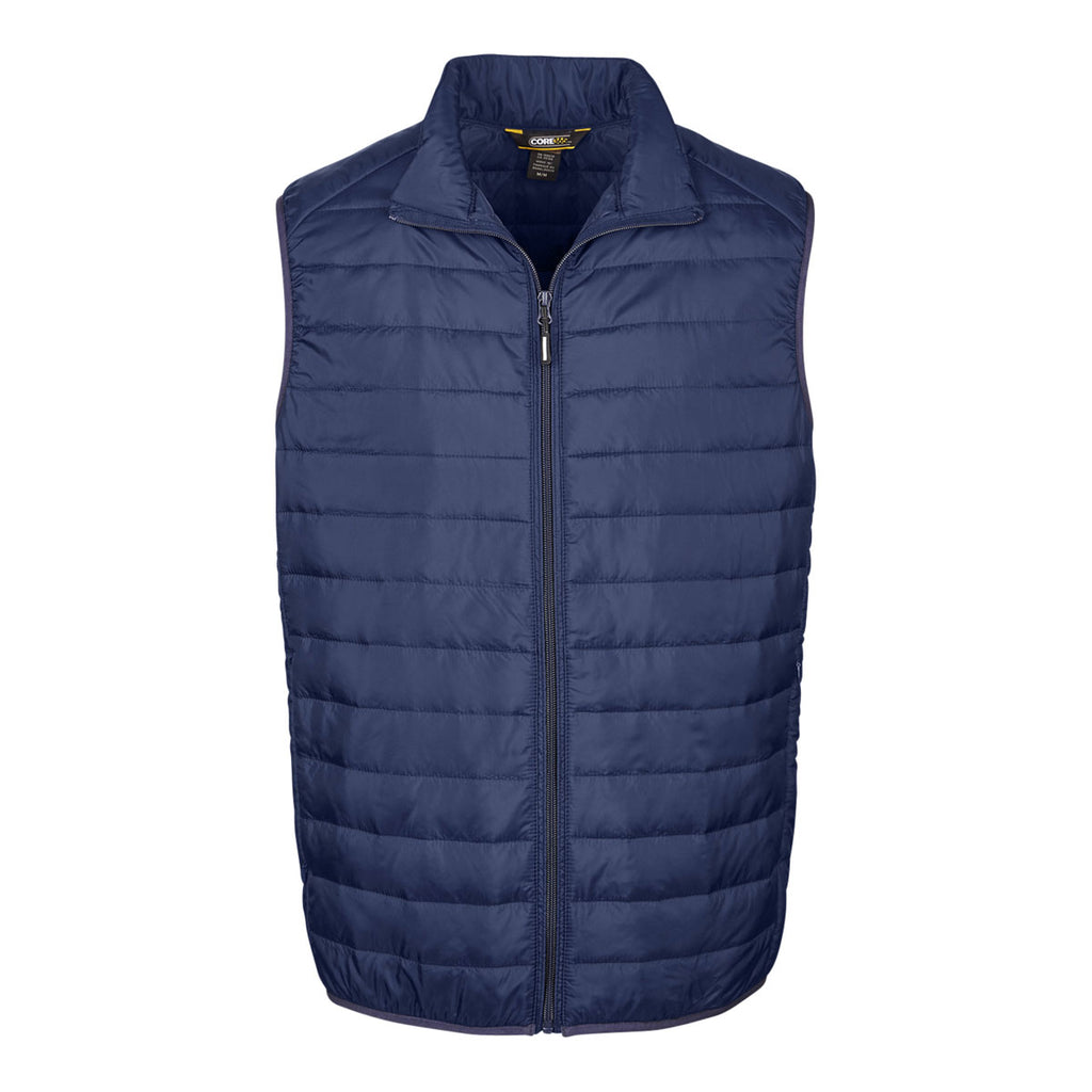 Core 365 Men's Classic Navy Prevail Packable Puffer Vest allows your arms to be comfortable and free while battling the harsh elements to keep your core warm and dry. You can effortlessly layer a shirt or sweater underneath it. With an auto-lock zip-up front and pockets, it pulls double-duty as both a comfy layer and one that protects you from unpredictable weather. Stretch binding at armholes and hem locks in warmth. Custom clothing is a proven strategy to build brand trust and this men's vest sporting your company's logo means you're one step closer to building corporate image and identity.Corresponding Women's Style:Core 365 Women's Classic Navy Prevail Packable Puffer Vest