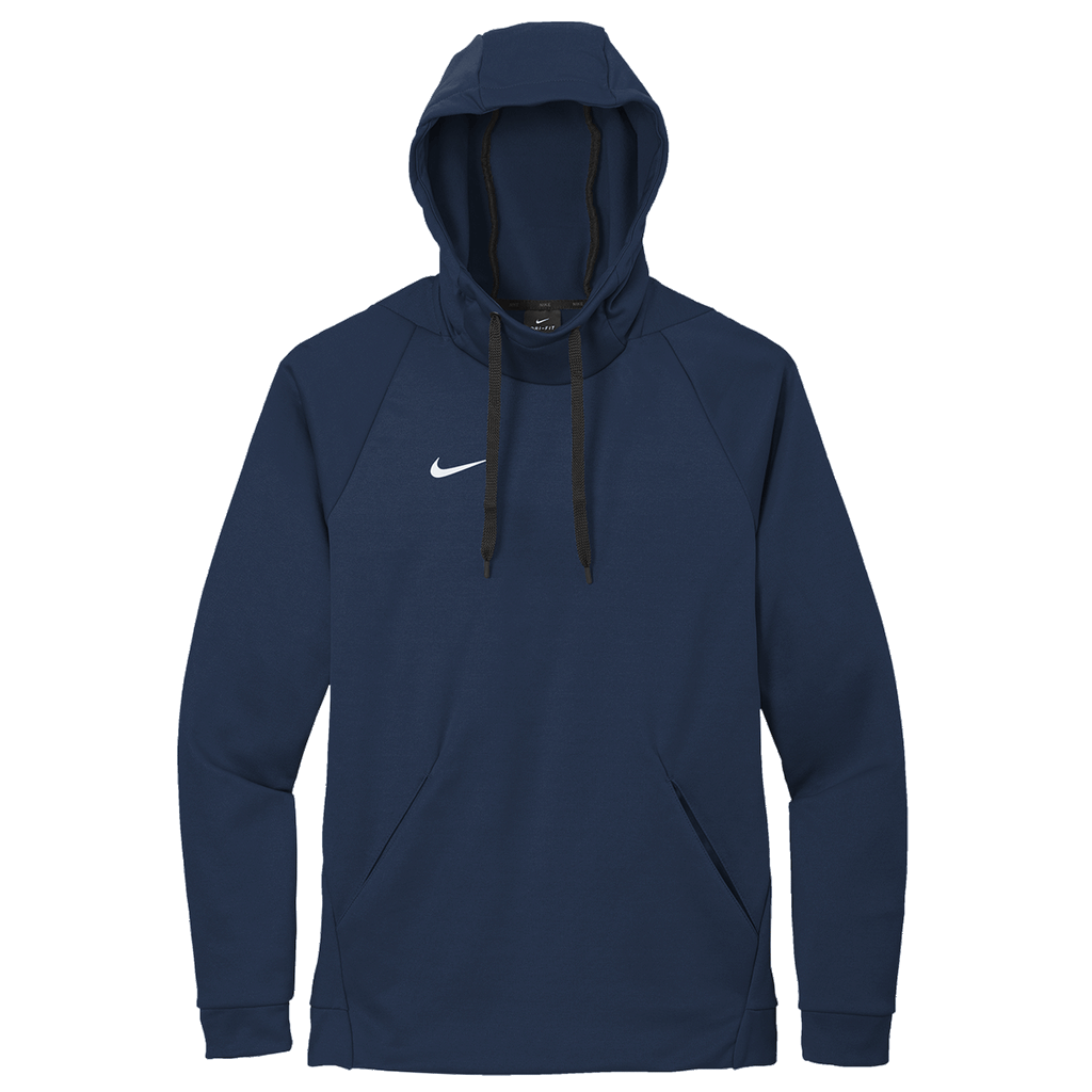 Add screen print to the sleek Nike Men's Team Navy Therma-FIT Pullover Fleece Hoodie. In true Nike style, this high-end fleece hoodie is a year round essential with incredibly warm fabric that is breathable, yet manages moisture. Add a custom logo to add this to your logoed apparel line or to add to a personal wardrobe. The trademark swoosh appears on the right chest on this hoodie that can be worn alone or layered with ease. A kangaroo pocket keeps small items secure as you go about your day.