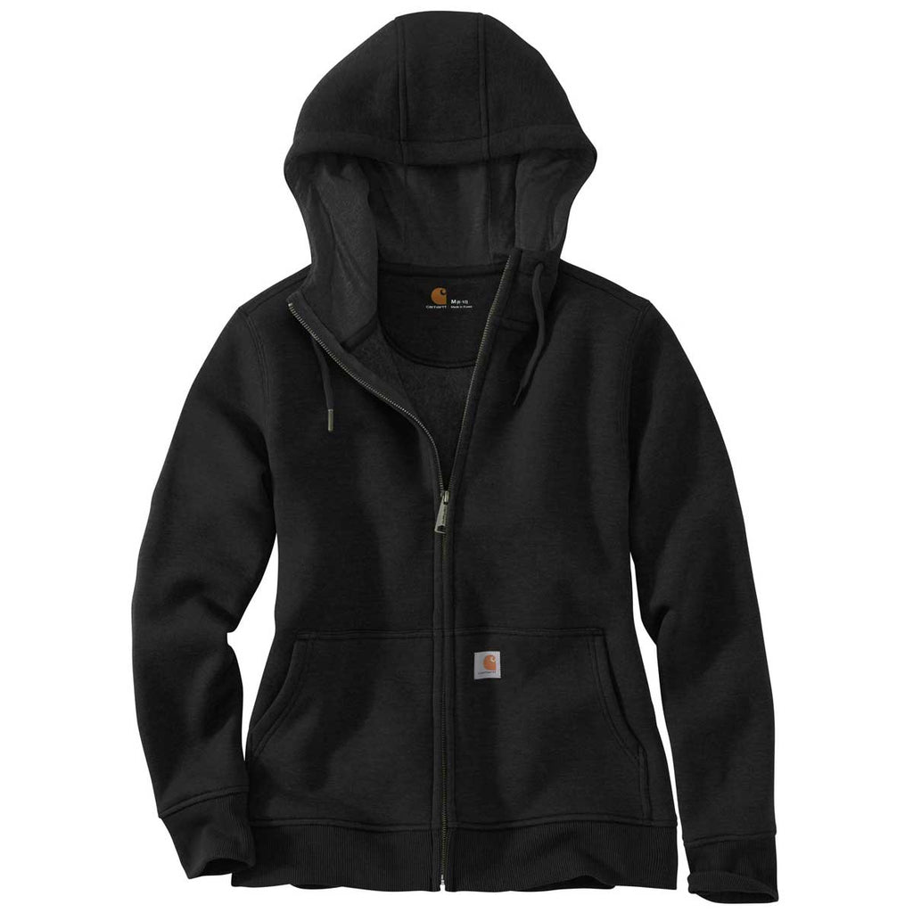 Add embroidery to the Carhartt Women's Black Clarksburg Full Zip Hoodie for a workwear look that is both durable and gorgeous. When you spend time outdoors you need something that will stand up to tough days and this cotton poly blend is tough enough. The best part is a soft feel on the interior, like a favorite sweatshirt that would make a great custom gift with the logo of your choice. The stretchable, spandex-reinforced, rib knit cuff and waistband has a relaxed fit that does not look sloppy. Add a company logo to use as employee gifts or apparel that can be worn daily or as needed.