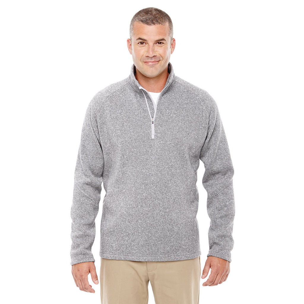 Devon & Jones Men's Grey Heather Bristol Sweater Fleece Quarter-Zip