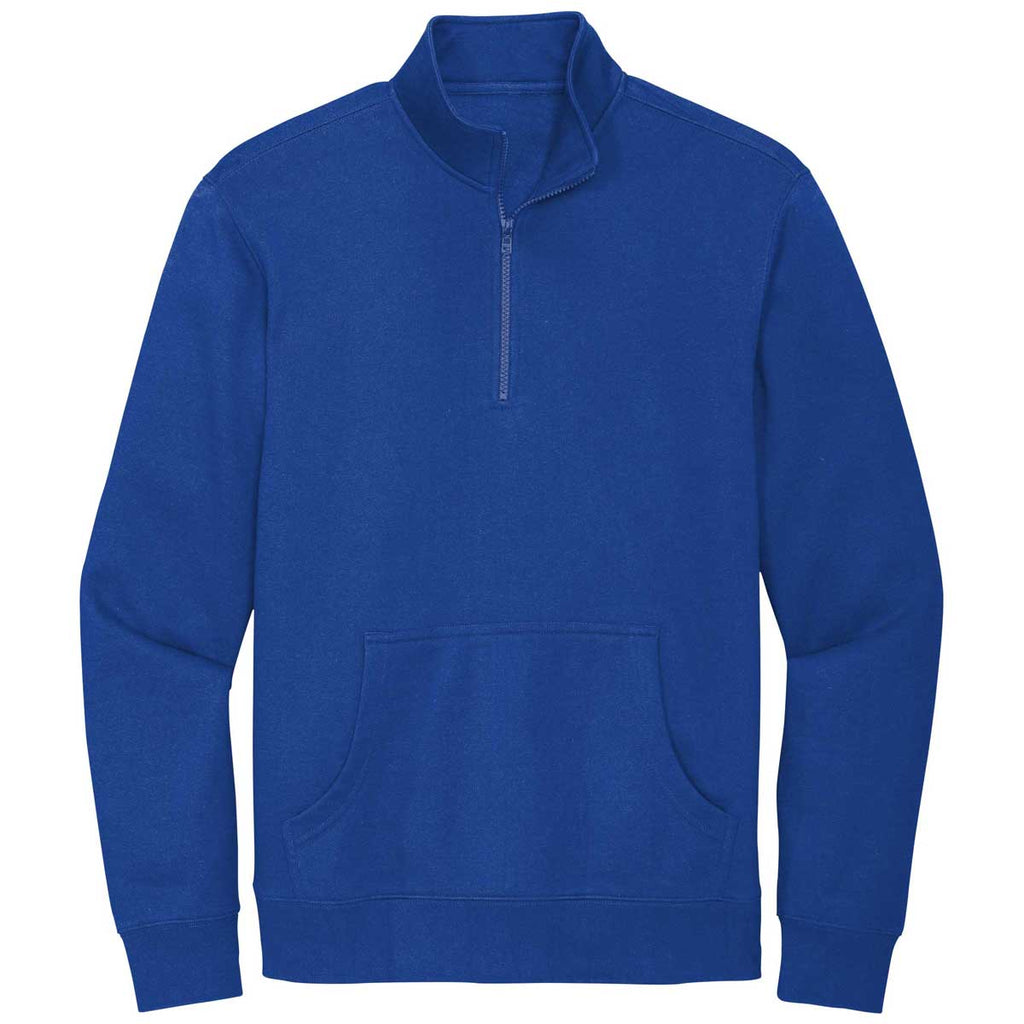 Add embroidery to the District Men's Deep Royal V.I.T. Fleece Quarter Zip for a clean, casual look that can go almost anywhere. Created from ring spun cotton and polyester fleece, this 1/4-zip is soft and comfortable for all day wear. Add a company logo to use as an employee gift or as incentive to visit a booth at a trade show or event. In many professions, this can be used as employee apparel that helps workers be recognized and associated with your company.Highlights