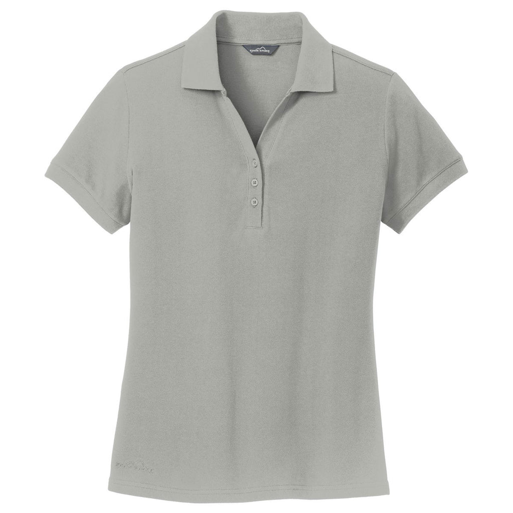 Between a 100% cotton pique fabric construction, a flat-knit collar, side vents, and solid, durable Eddie Bauer buttons, you know that this Eddie Bauer Women's Chrome Cotton Pique Polo isn't just here to sit in your closet and never be used. It's ready for adventure. It can handle the weather, the washer/dryer, and, perhaps more importantly, the hustle and bustle of everyday life. And since it has a contoured fit and plenty of style, that means you can go about your business looking as stylish as you'd like. Add your custom logo to this pique polo via our embroidery process. Ready for everyday adventures, this durable polo resists fading, shrinking and pilling. The slight basket weave texture of the pique knit enhances the natural softness of the cotton.