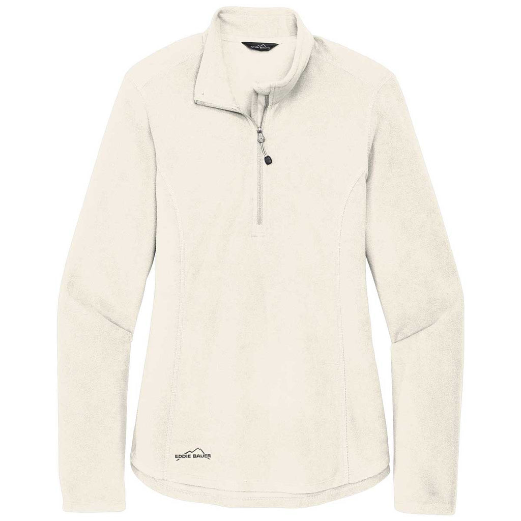 Add embroidery to the Eddie Bauer Women's Ivory Half Zip Microfleece Jacket to create a fun and funky look that everyone can appreciate. This high-end option is a must have for those who like to brave the chilly weather without the typical bulk of a fleece jacket. Stay warm in the polyester microfleece jacket with anti-pill finish so you are always looking your best whether headed to the office or out to spend time with friends. A company logo creates an ideal employee gift for the holidays that will be worn for many seasons to come.