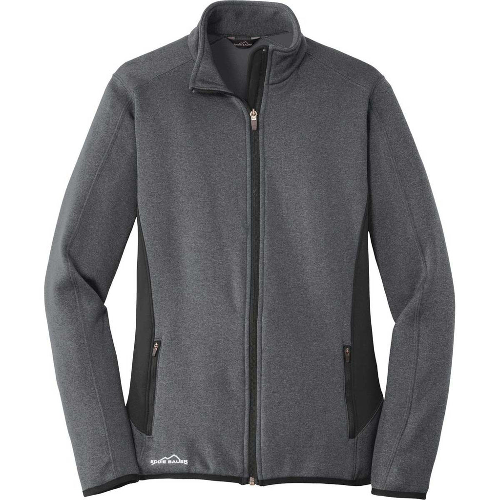 When you need to move around, whether it's outdoors decorating for the holidays or indoors competing in a league game, you want a fleece jacket designed to maximize movement. The Eddie Bauer Women's Dark Charcoal Heather Full-Zip Heather Stretch Fleece Jacket gives you the movement flexibility to complete home improvement projects and compete in your favorite sport. Highly breathable brushed back fleece quickly removes the sweat that builds up on your skin. Take advantage of the imprint area on the jacket to attach your company logo. Enjoy the convenience of storing personal possessions in one of the rust resistant front zippered pockets.