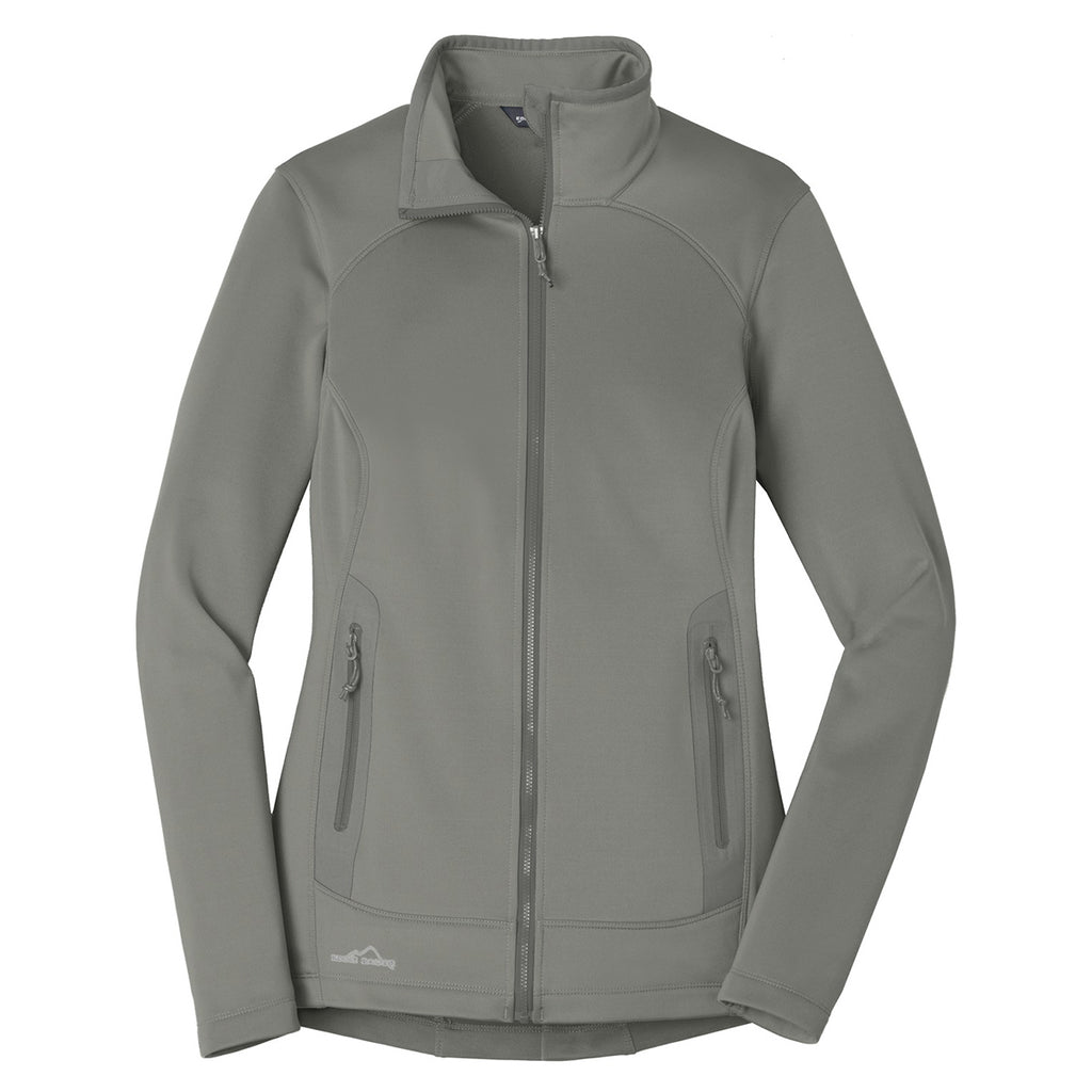 A perfect description of corporate layering is whenever you put on the logoed Eddie Bauer Women's Metal Grey Highpoint Fleece Jacket. Sophisticated enough to wear at corporate events, the stretchable twill fleece jacket includes tonal welding details located on the pockets to create optimal visual appeal. Rip and tear resistant polyester ensures you enjoy wearing the elegantly designed fleece jacket for years to come. The attractive feminine collar separates the jacket from other types of corporate apparel. Attach your company logo on the large imprint area and watch recognition for your brand soar. You can feel confident that your employees will wear this jacket at the office and after hours. The classic design will ensure it stays an employee favorite for years to come.