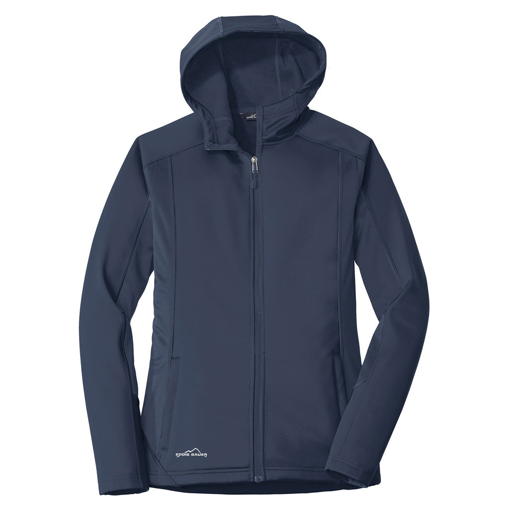 Give the logoed Eddie Bauer Women's River Blue Trail Soft Shell Jacket to each member of your successful team. The sleek embroidered corporate gift includes a large imprint area to attach your corporate logo. Designed with 100% rugged polyester knit shell and DWR coating, the jacket also receives a water-resistant laminated film to prevent Mother Nature from dampening your day. The micro fleece brushed interior feels smooth to keep you feeling fresh all-day long. Attach the hood to bundle up when the weather takes a turn for the worse. Your team will appreciate having a jacket that they actually want to wear both to the office and after hours.