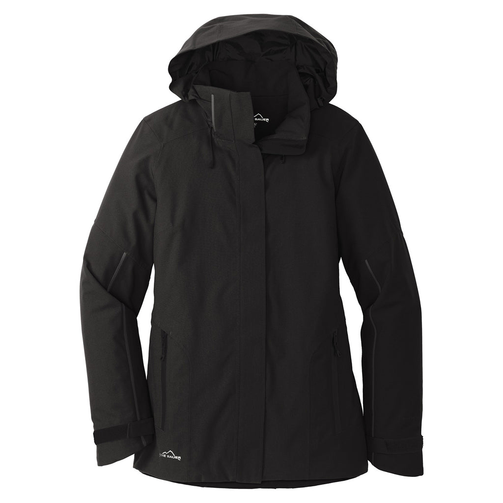 Manufactured to outlast the worst weather, the embroidered Eddie Bauer Women's Black WeatherEdge Plus Insulated Jacket gives you the edge over Mother Nature. The fully seam-sealed technical jacket scores high on the waterproof and breathability scales. Trademarked WeatherEdge technology includes proprietary Storm-Repel water repellent to add an additional layer of protection against harsh weather. Fully insulated to keep you warm, the ladies jacket comes with an interior pocket to store electronic devices. All of this adds up to a jacket that keeps you warm and comfortable all day long. Attach a custom logo on the large imprint area to spread the word about your products and services at industry trade shows.