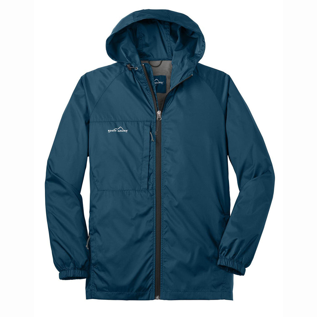 If you want to talk about functional' wind jackets, then the conversation should start here. Eddie Bauer Men's Adriatic Blue Packable Wind Jacket isn't just about the function of protecting you from the wind'even though it does a stellar job of that. But the fact that it can pack down into the size of a pocket ensures that this isn't just the wind jacket for all seasons, but the wind jacket for all situations. It has all the frills'reverse coil zippers, underarm vents, a packable zippered chest pocket'but does it all while being the most travel-friendly jacket imaginable. With a custom corporate logo on the front, you can give your employees instant travel-ready gear with one essential item.