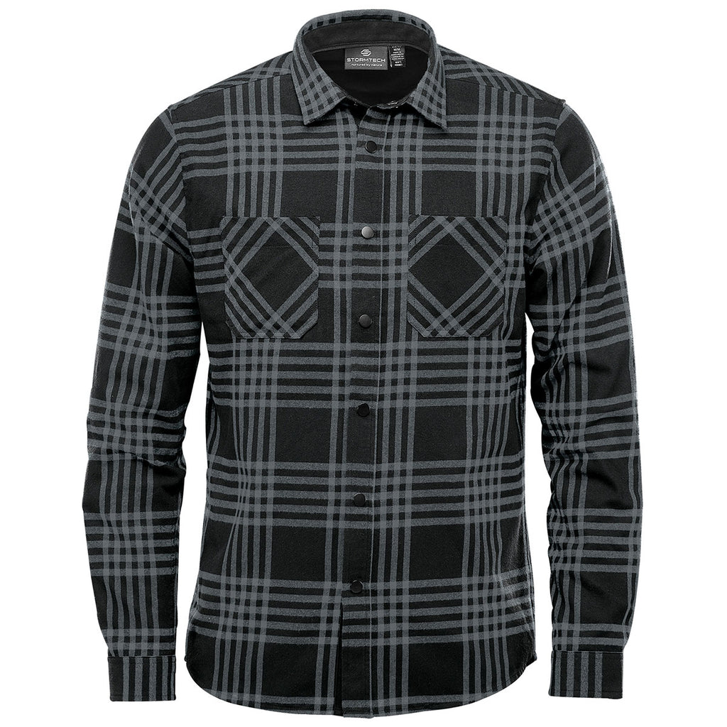 Create a custom look with the Stormtech Men's Carbon/ Black Santa Fe Long Sleeve Shirt. This vibrantly colored shirt is a sleek new design on a traditional plaid shirt. Add embroidery to the urban outdoor staple to create an eye-catching, cultured look without going overboard. Try out a company logo to use as uniforms with snap chest pockets and snap closure for easy wear. Great to wear alone of layer whether creating a look or actually enjoying the great outdoors. The contoured finish finishes the look that is ready to be worn no matter what your day may hold.Corresponding Women's Style:Stormtech Women's Carbon/ Black Santa Fe Long Sleeve Shirt