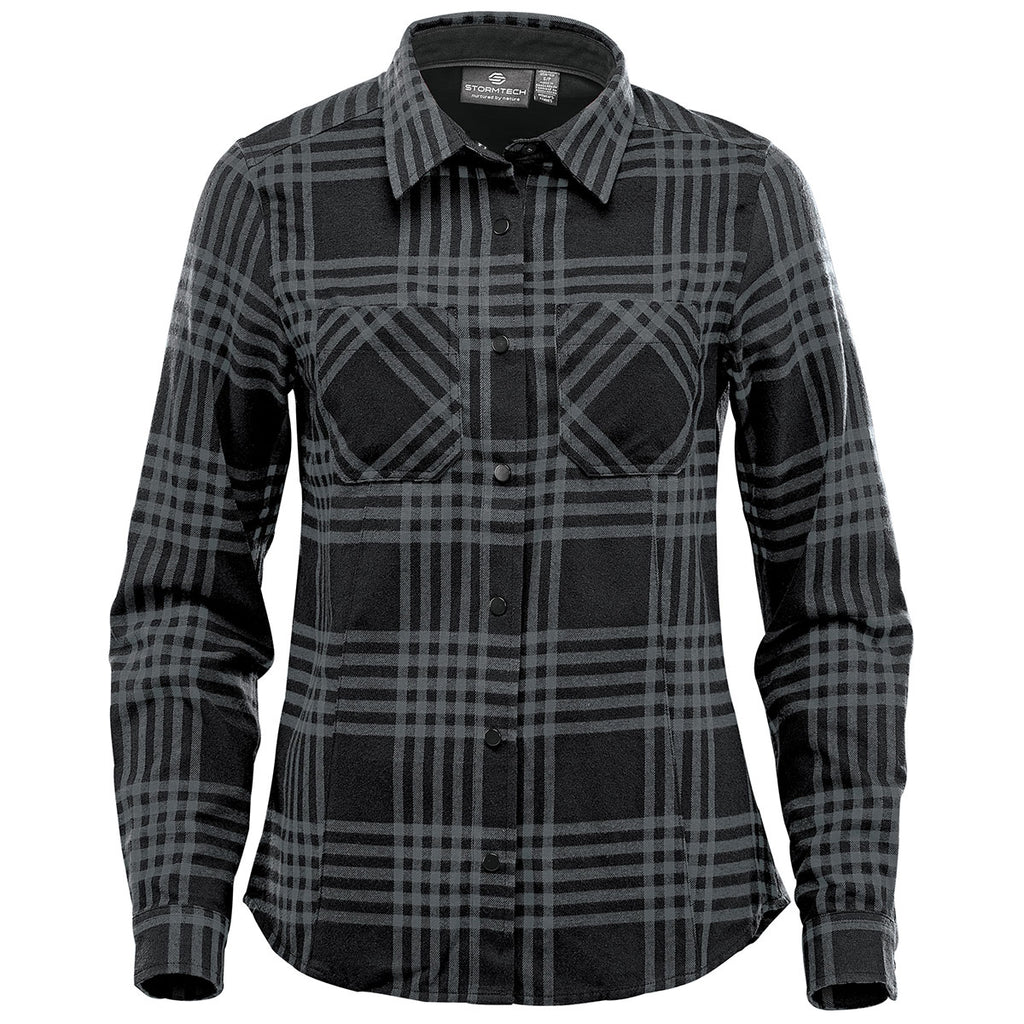 Embroidery will pop on the Stormtech Women's Carbon/ Black Santa Fe Long Sleeve Shirt. The vibrant color palette chosen for this shirt is an updated take on the traditional plaid shirt. The unforced finish is an urban outdoor staple whether making a weekly trip to the farmer's market or heading out with friends for an early morning hike. Add a custom logo to give as gifts or a company logo to use as part of employee apparel. A truly cultured look with snap closures along the front and snap closure pockets, this urban essential is a must have.Corresponding Men's Style:Stormtech Men's Carbon/ Black Santa Fe Long Sleeve Shirt