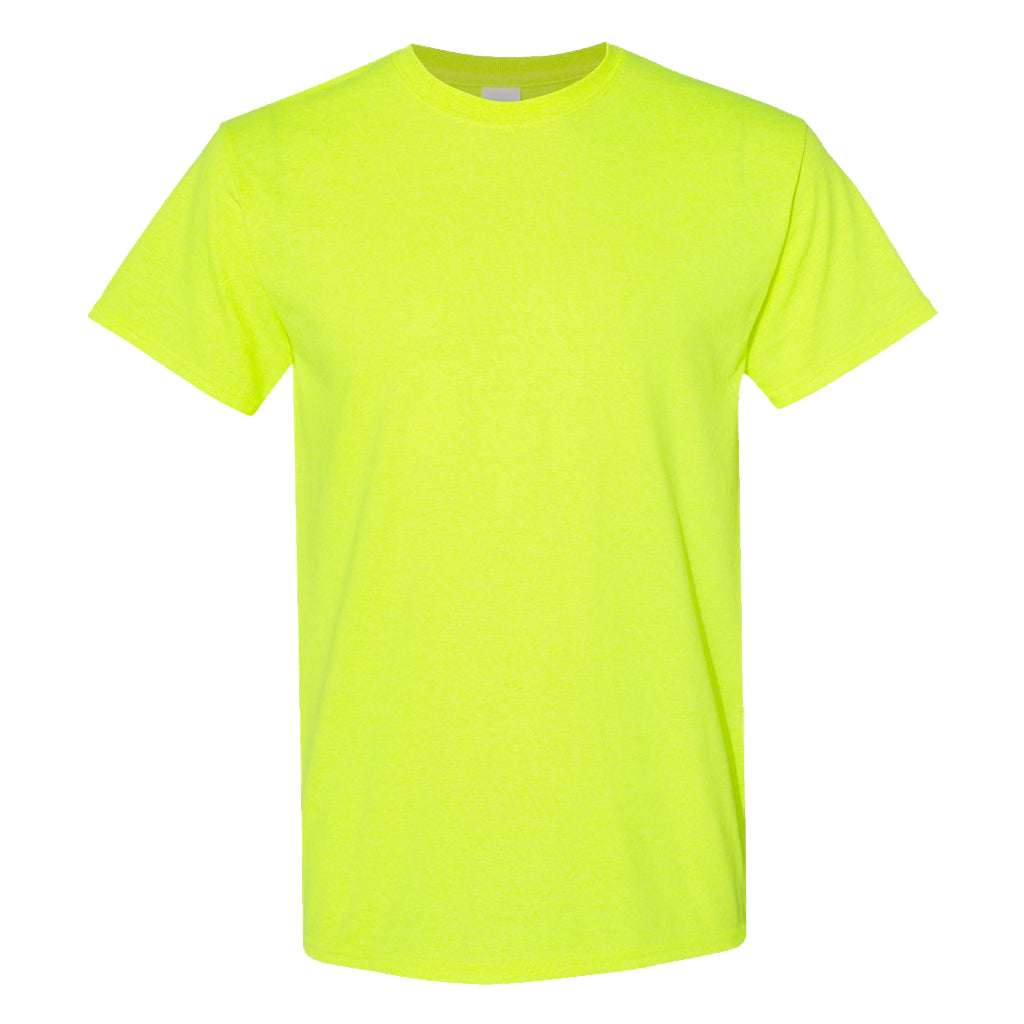 As the ideal gift for participants at golf events and 5k races, the logoed Gildan Men's Safety Green 5.3 oz. T-Shirt features a stylish rib at the neckline to achieve company fashion greatness. The classic fit makes the t-shirt a welcome addition for any professional that wants apparel flexibility at work and play. Super soft 100% preshrunk cotton delivers supreme comfort to keep you feeling fresh all day long. Double needle stitching prevents rips and tears to give you go to short sleeve shirts for years to come. Screen print a custom logo on the t-shirt to reach more potential customers at outdoor civic events.Corresponding Women's Style: Gildan Women's Safety Green 5.3 oz. T-Shirt