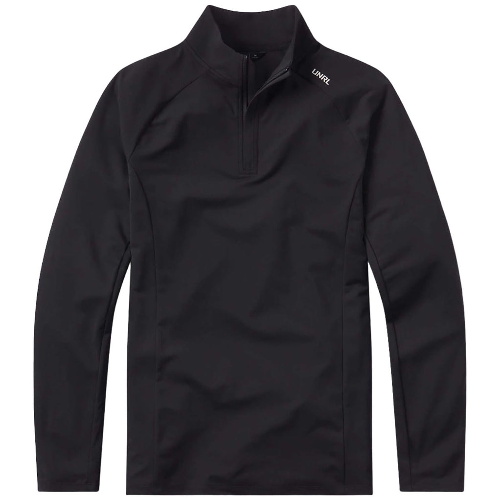 The UNRL Men's Black Highlands Quarter Zip provides light weight SPF protection in a novel performance fabric. A refined layering piece that easily transitions from the office to the golf course. Contoured at the shoulders and throughout the body, this quarter zip allows full range of motion at the tee box. The only thing missing is a custom logo to outfit your entire team.