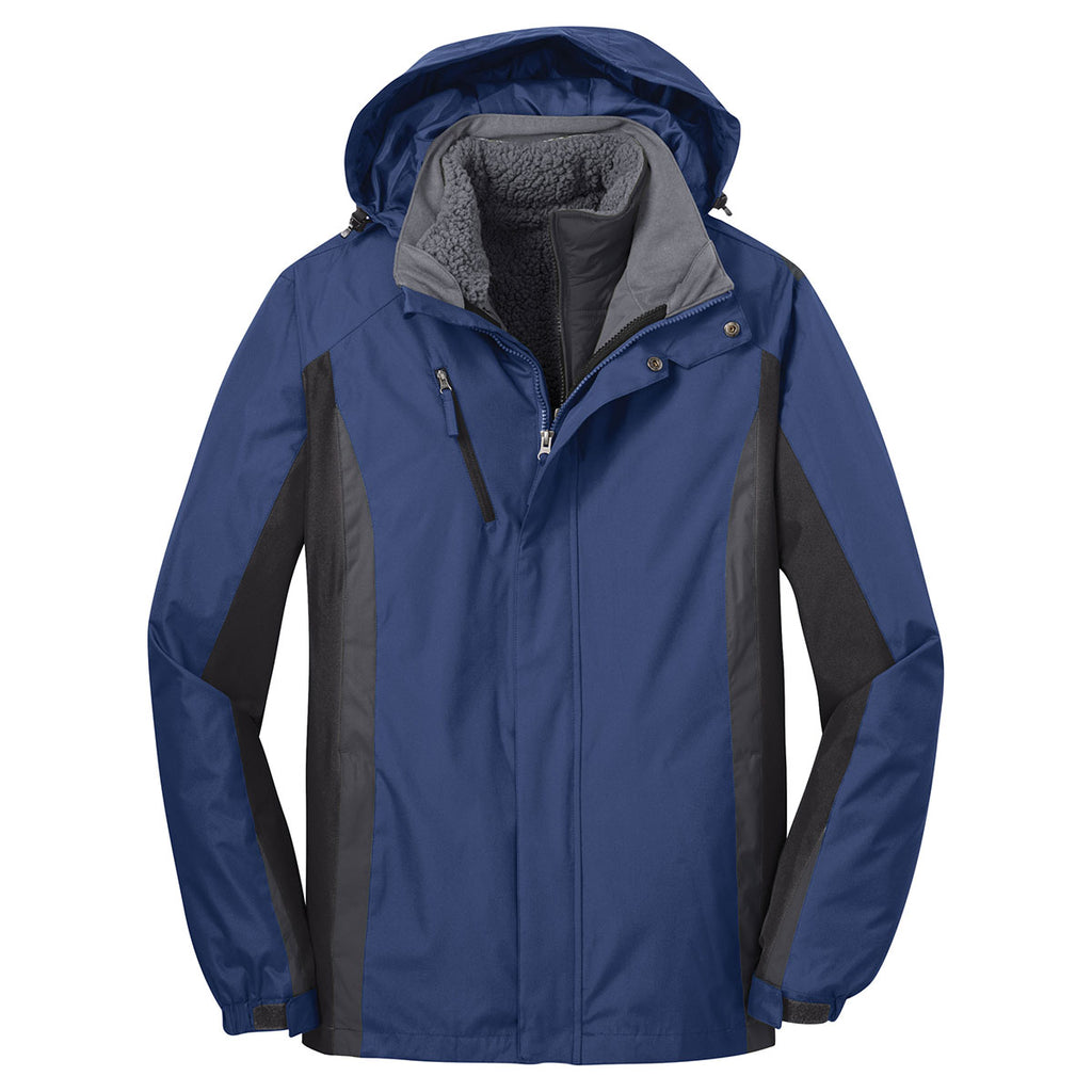 Port Authority Men's Admiral Blue/ Black/ Magnet Grey Colorblock 3-in-1 Jacket