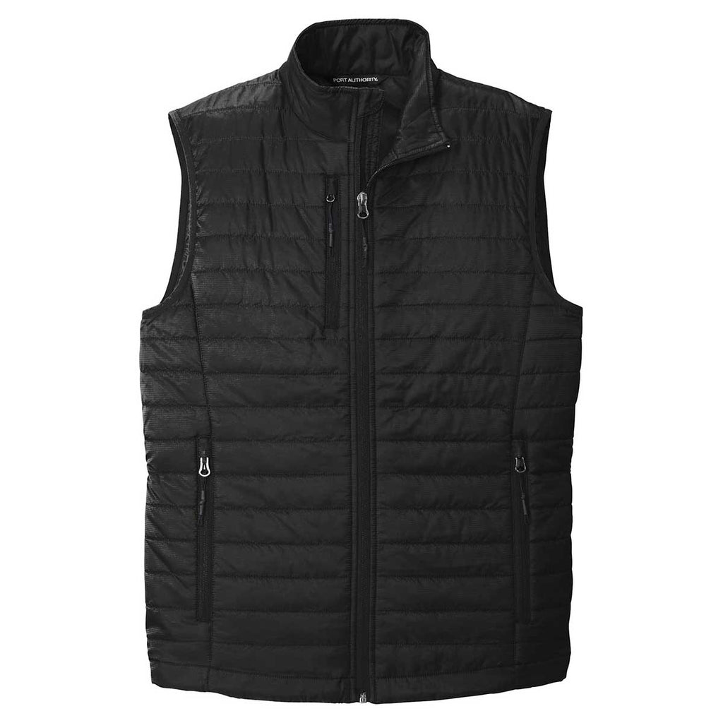 When a cold chill tinges the air add a custom Port Authority Men's Deep Black Packable Puffy Vest to your wardrobe. Made of 100% polyester on the shell with polyfill insulation, this vest is idea for a morning run or a daily commute. Add an embroidery of your choice to create an addition to company uniforms or a corporate logo to offer as employee gifts. Zippered front pockets, a chest pocket, and a port pocket keep small necessities close at hand whether enjoying time hiking or heading to the office for a long day of meetings. The sleek design will be a welcome addition to nearly every wardrobe.Corresponding Women's Style:Port Authority Women's Deep Black Packable Puffy Vest