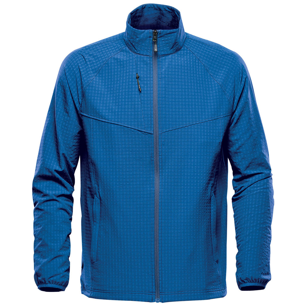 Enjoy a custom look with the Stormtech Men's Classic Blue Kyoto Jacket. This unique jacket has a hard faced waffle backed fabric that traps pockets of warm air on the interior to protect you from cold weather. Advanced stretch technology allows for freedom of movement to keep you moving, even when working outdoors. Add a custom logo to create a logoed apparel line for your business or a company logo to give as employee gifts for the next holiday or special occasion. The superior range of motion paired with enhanced breathability keeps you comfortable whether running errands, enjoying the great outdoors, or hanging out with friends after work.Corresponding Women's Style:Stormtech Women's Classic Blue Kyoto Jacket