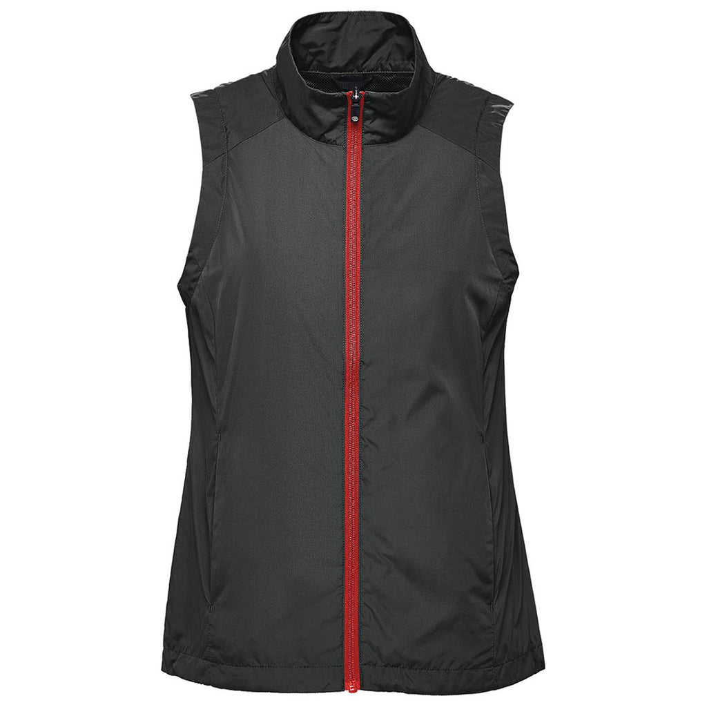 The Stormtech Women's Black/Bright Red Pacifica Vest with the custom embroidery of your choosing will make a highly versatile custom gift that everyone can enjoy. The ultra lightweight and compactable wind vest is ideal when Mother Nature is being difficult. If you are planning a hike or camping trip or even working out outdoors this vest is great for mild weather to keep your core protected. A sleek way to update uniforms with a company logo, this vest is great for those who are out front and seen by customers. The vest is versatile and only limited by your imagination. Place an order today.Highlights