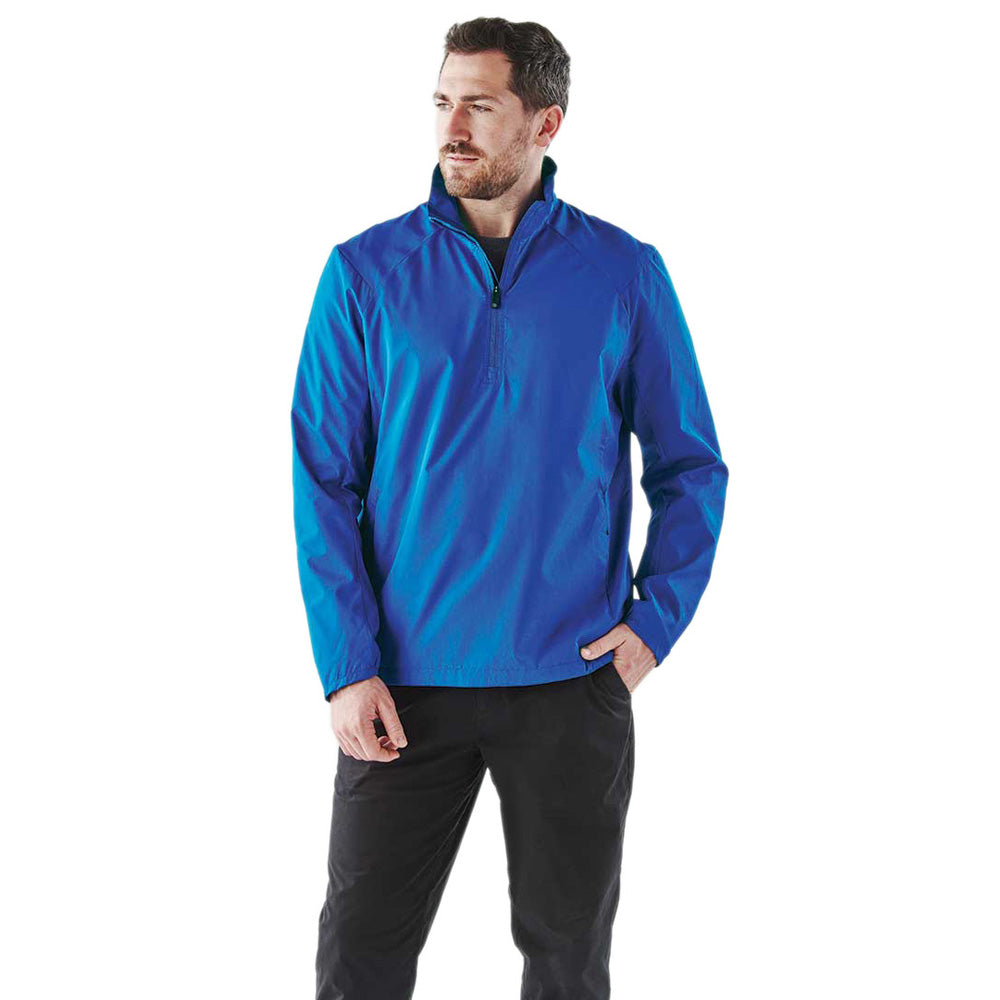 Keep things simple with embroidery on the Stormtech Men's Classic Blue Pacifica 1/4 Zip Anorak to use as a custom gift or uniform piece as needed. The lightweight and easily portable 1/4 zip is easy to layer and enjoy. Perfect for passing showers when working outdoors, the vented shell with back mesh is great for an active lifestyle. When done using the pullover, pack it into its own pocket for trouble free carrying. Great for hiking, biking, and other outdoor activities, this 1/4 zip also works for those who need to represent the company while working outdoors. Place an order right away.Highlights