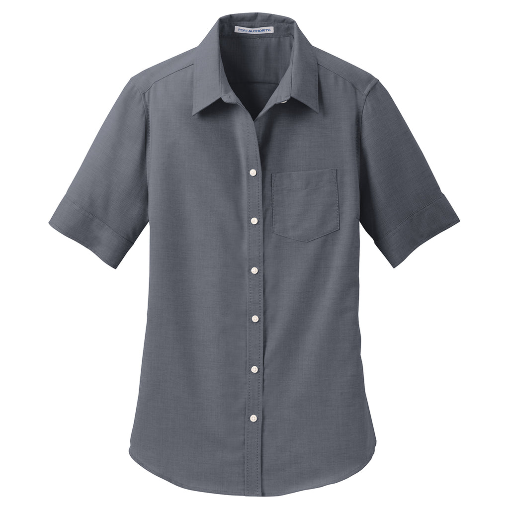 Port Authority Women's Black Short Sleeve SuperPro Oxford Shirt