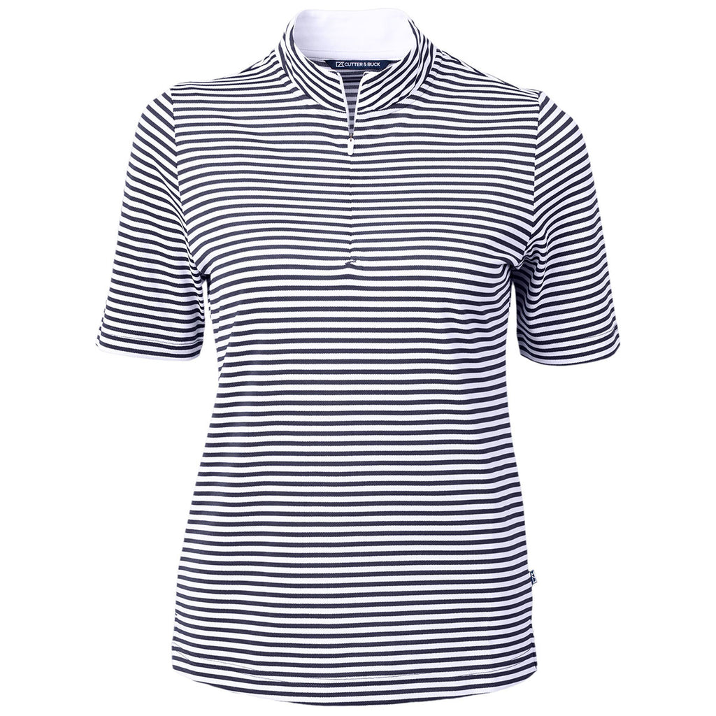 Cutter & Buck Women's Navy Blue Virtue Eco Pique Stripped Recycled Polo