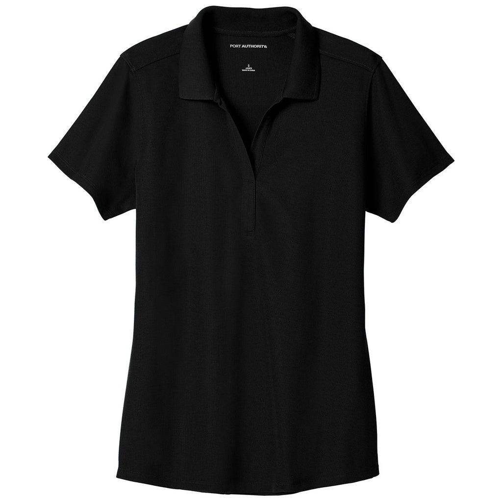 Select the ultimate employee uniform for the women members of your dedicated team by ordering the custom logoed Port Authority Women's Black EZPerformance Pique Polo. Highly durable 100% spun polyester pique fabric resists the types of rips and tears that diminish the quality of other styles of polos. Wear the multi-purpose polo to work and keep it on after the workday ends when you kick back at your favorite restaurant. The sleek Y-neck placket and open hem sleeves put the polo on the highest fashion pedestal. Add a custom logo on the embroidery area to reach more potential customers at industry trade shows.Corresponding Men's Style: Port Authority Men's Black EZPerformance Pique Polo