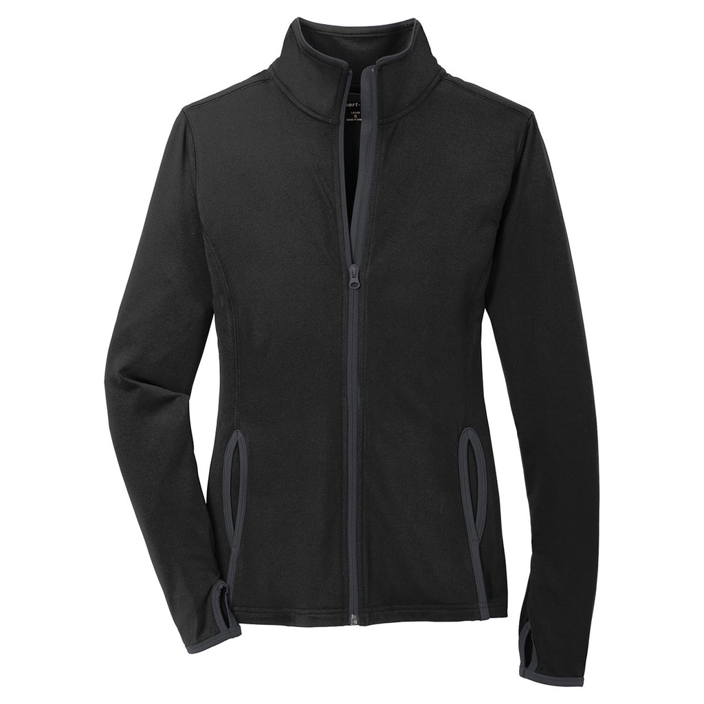Sport-Tek Women's Black/Charcoal Grey Sport-Wick Stretch Contrast Full-Zip Jacket