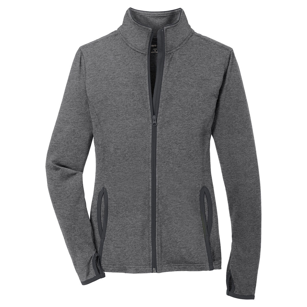 Sport-Tek Women's Charcoal Grey Heather/Charcoal Grey Sport-Wick Stretch Contrast Full-Zip Jacket