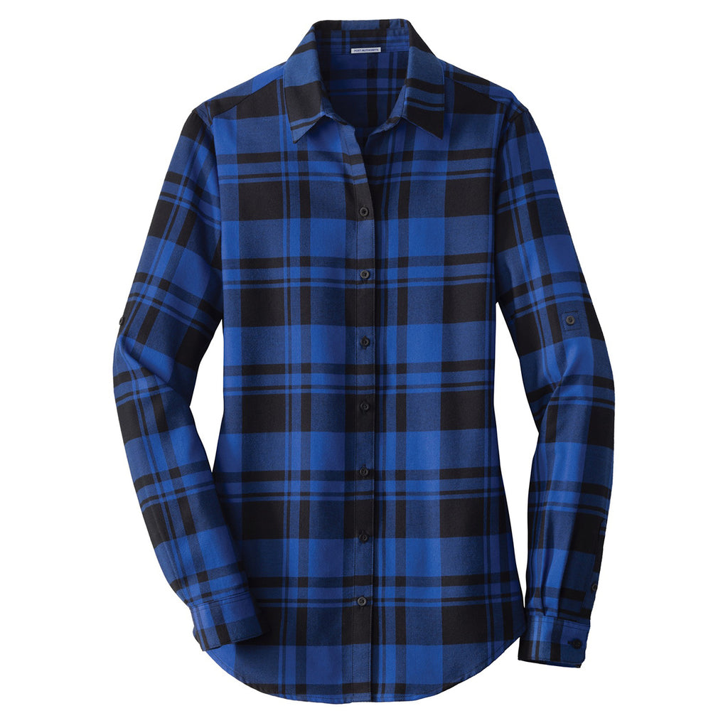 If you want to make a lasting impression on the female members of your successful team, give the sleek Port Authority Women's Royal/Black Plaid Flannel Tunic. The classic flannel shirt takes casual appearance to the next level. While still keeping the polished look you need. Lightweight cotton and polyester form a formidable fashion duo to ensure years of durability. Lightly brushed to increase softness, the flannel tunic possesses a higher than average length to ensure maximum coverage and comfort. Add a custom logo to the large imprint area to give professional peers an up-close look of your company at industry trade shows and corporate events.Corresponding Men's Style:Port Authority Men's Royal/Black Plaid Flannel Shirt