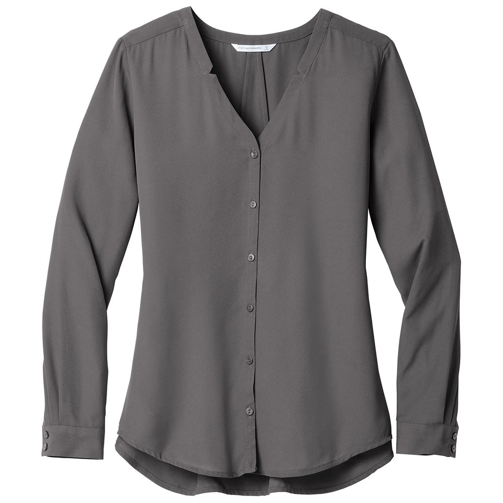 Port Authority Women's Sterling Grey Long Sleeve Button-Front Blouse