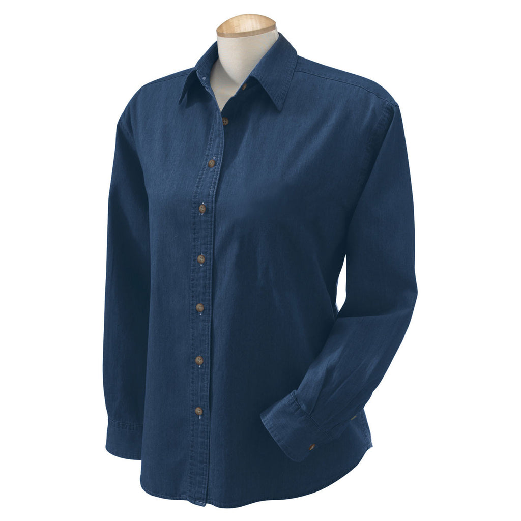 Harriton Women's Dark Denim 6.5 oz. Long-Sleeve Denim Shirt