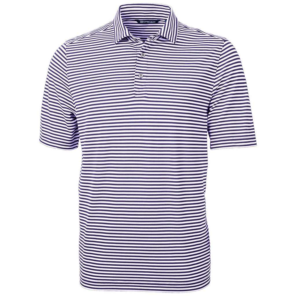 Cutter & Buck Men's College Purple Virtue Eco Pique Stripped Recycled Polo