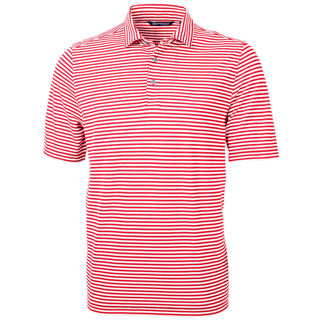 Cutter & Buck Men's Red Virtue Eco Pique Stripped Recycled Polo