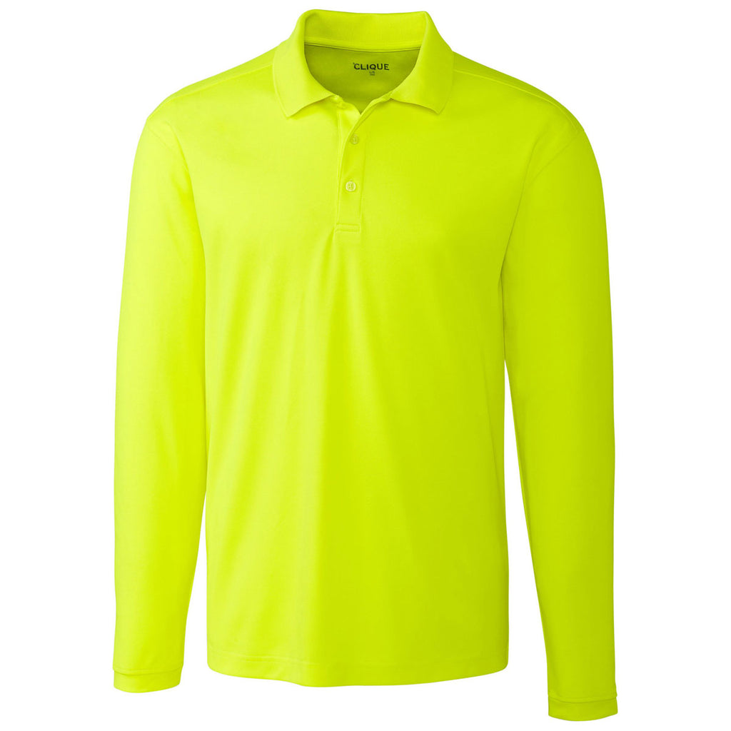 Released in 2018, the custom logoed Clique Men's Hi-Vis Yellow Long Sleeve Spin Pique Polo brings traditional short sleeve polo features to wearing a long sleeve shirt. The three-button placket looks just like the three-button placket created for the short sleeve version of the long sleeve pique polo. Reward the members of your hard working team by handing out the polo at the next employee appreciation day. Designed with 100% spin-dyed polyester pique, the rugged polo resists the types of rips and tears that diminish the quality of other long sleeve shirts. Add your corporate logo on the embroidery area to attract more interest in your company.Corresponding Women's Style: Clique Women's Hi-Vis Yellow Long Sleeve Spin Pique Polo