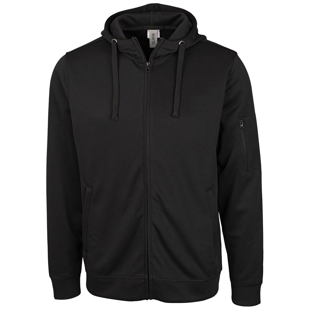 The Clique Men's Black Lift Performance Full Zip Hoodie is the perfect sweatshirt to throw on quickly when you want to be comfortable after a long, hard day at the office. A custom logo can be added to the front which provides an easy way to advertise your company name. Choose from classic colors and enjoy fabulous product features including 100% polyester interlock fabric, attached hood with drawstrings, full zip closure, welt pockets, zip pocket on sleeve, and self-fabric banded hem and cuff. Purchase a few of these must-have hoodies as employee apparel and hand them out to the top earners at your company. In fact, why not give everyone a company hoodie.Highlights
