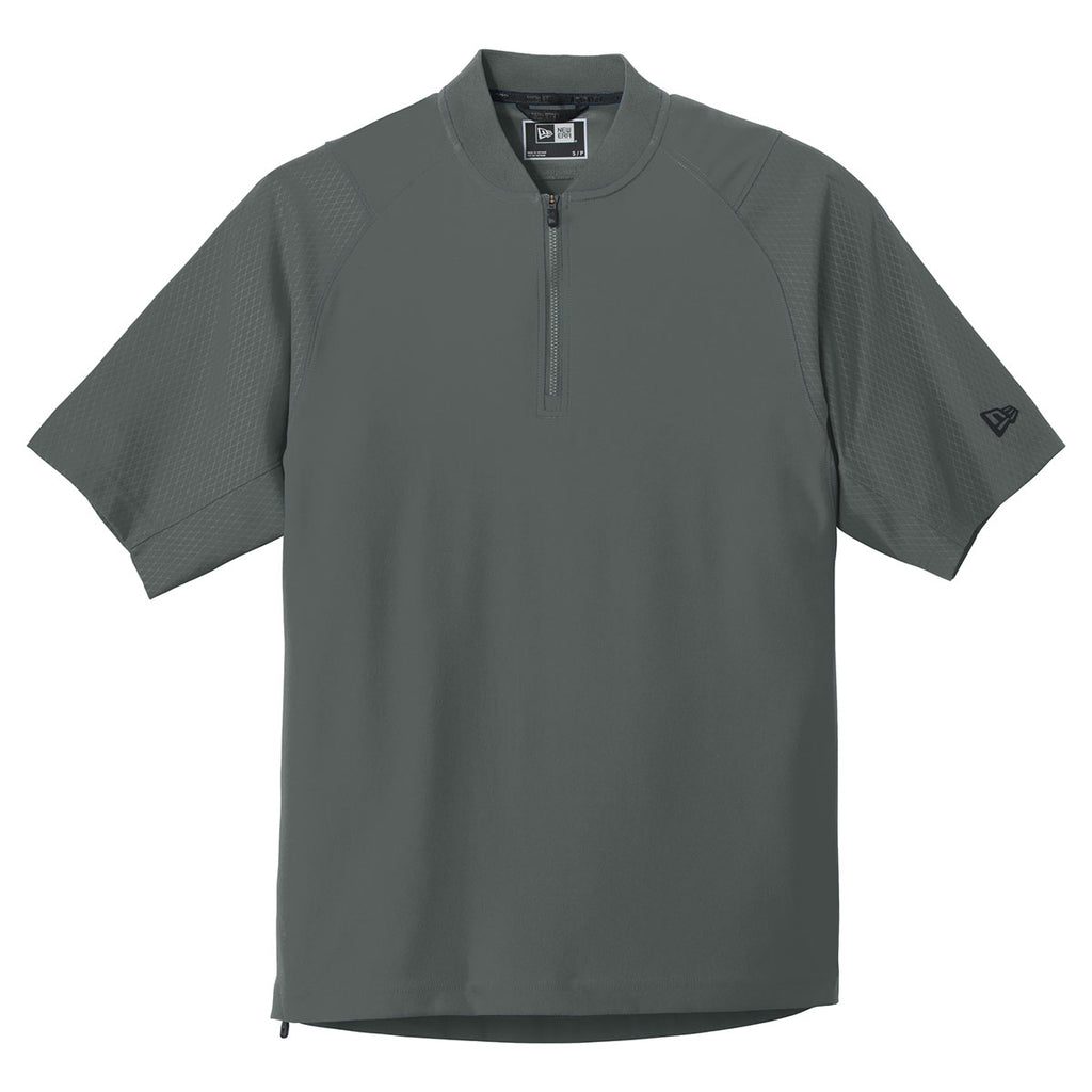 Step up to the plate for batting practice wearing the embroidered New Era Men's Graphite Cage Short Sleeve 1/4 Zip Jacket. Designed with a Durable Water Repellant (DWR) finish, the 94% polyester quarter-zip jacket is the ideal corporate apparel for preventing wet weather from dampening your active day. Rugged polyester withstands years of strong cuts at the plate in preparation for the corporate softball league season. A touch of spandex improves mobility to help you snag line drives in the outfield. Add a custom logo on the large imprint area to gain more exposure for your company at business seminars.