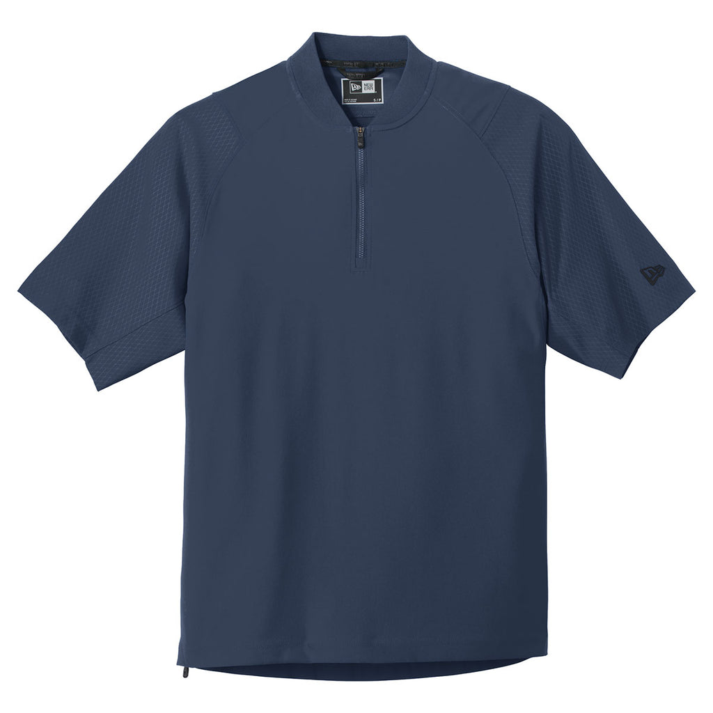 Step up to the plate for batting practice wearing the embroidered New Era Men's True Navy Cage Short Sleeve 1/4 Zip Jacket. Designed with a Durable Water Repellant (DWR) finish, the 94% polyester quarter-zip jacket is the ideal corporate apparel for preventing wet weather from dampening your active day. Rugged polyester withstands years of strong cuts at the plate in preparation for the corporate softball league season. A touch of spandex improves mobility to help you snag line drives in the outfield. Add a custom logo on the large imprint area to gain more exposure for your company at business seminars.